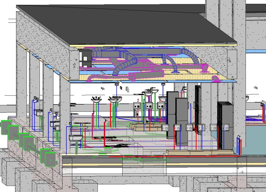 L’approccio progettuale messo in atto dalla ei bim project prevede sempre lo sviluppo tramite metodologia BIM, progettando e modellando le discipline Architettonica, Strutturale e impiantistiche. Attraverso una precisa modellazione di tutti gli elementi progettuali è possibile eseguire una analisi delle interferenze geometriche (Clash Detection) evitando che tali problematiche possano evidenziarsi durante la realizzazione dell’opera.